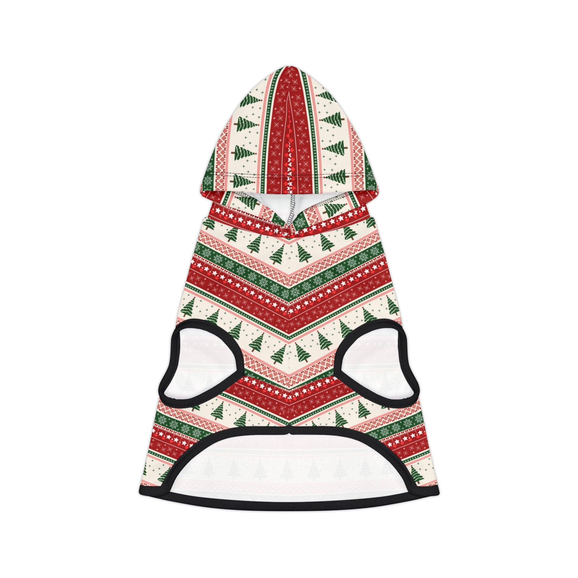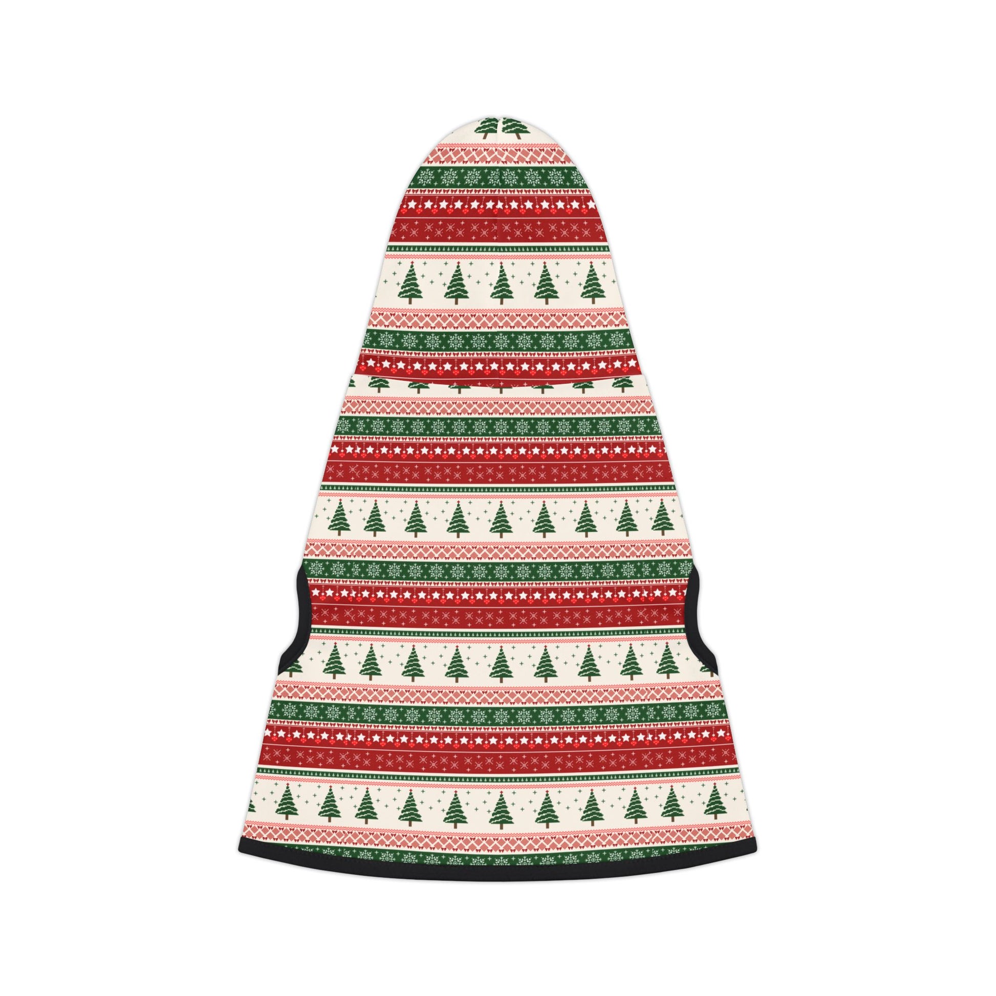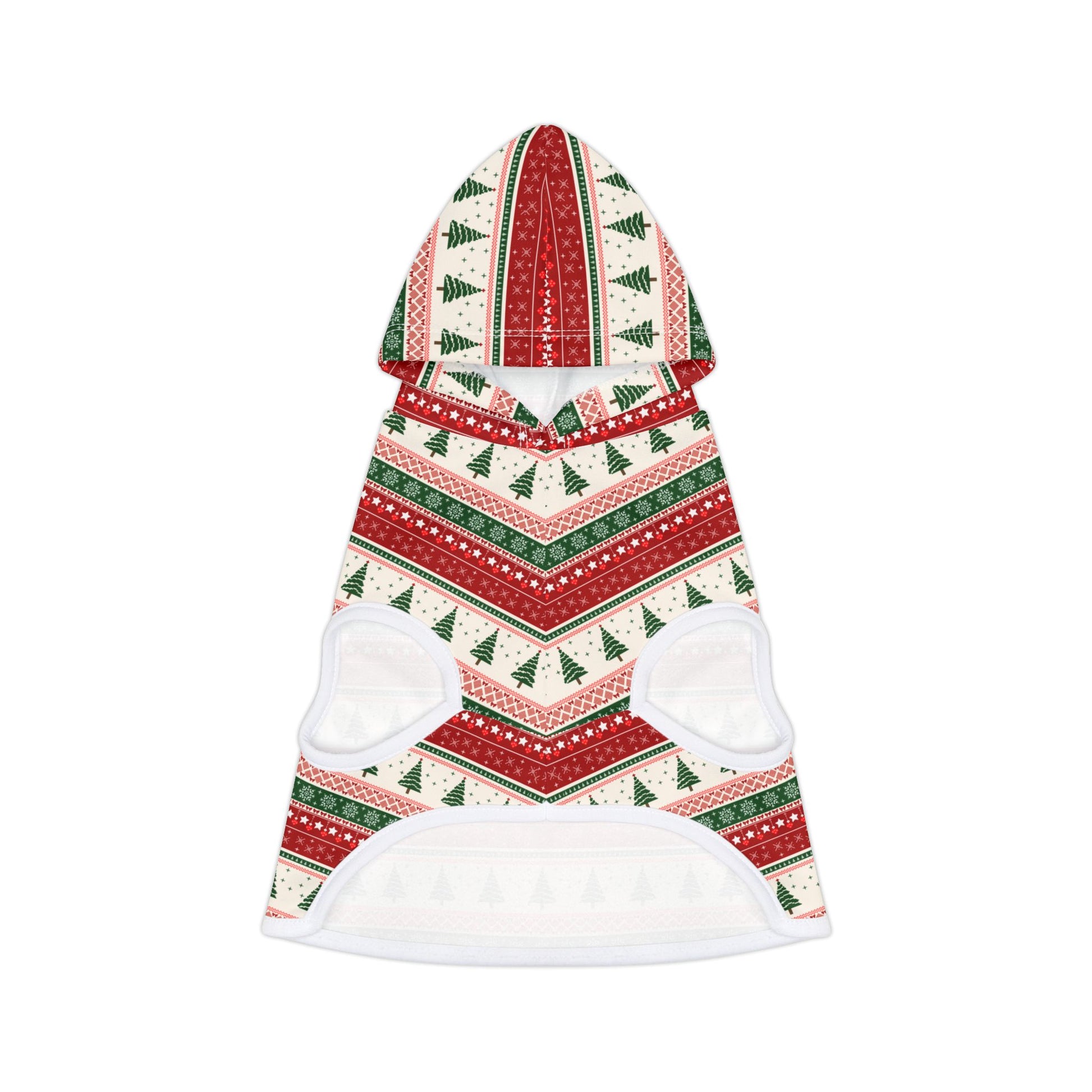 Wrap your furry buddy in the nostalgic warmth of the holiday season with our Cozy Christmas Cabin Pet Hoodie! Designed with a classic green-and-red Christmas tree pattern and dusted with delicate snowflakes, this hoodie feels like your pet is wearing a soft winter blanket — snug, charming, and full of Christmas spirit.