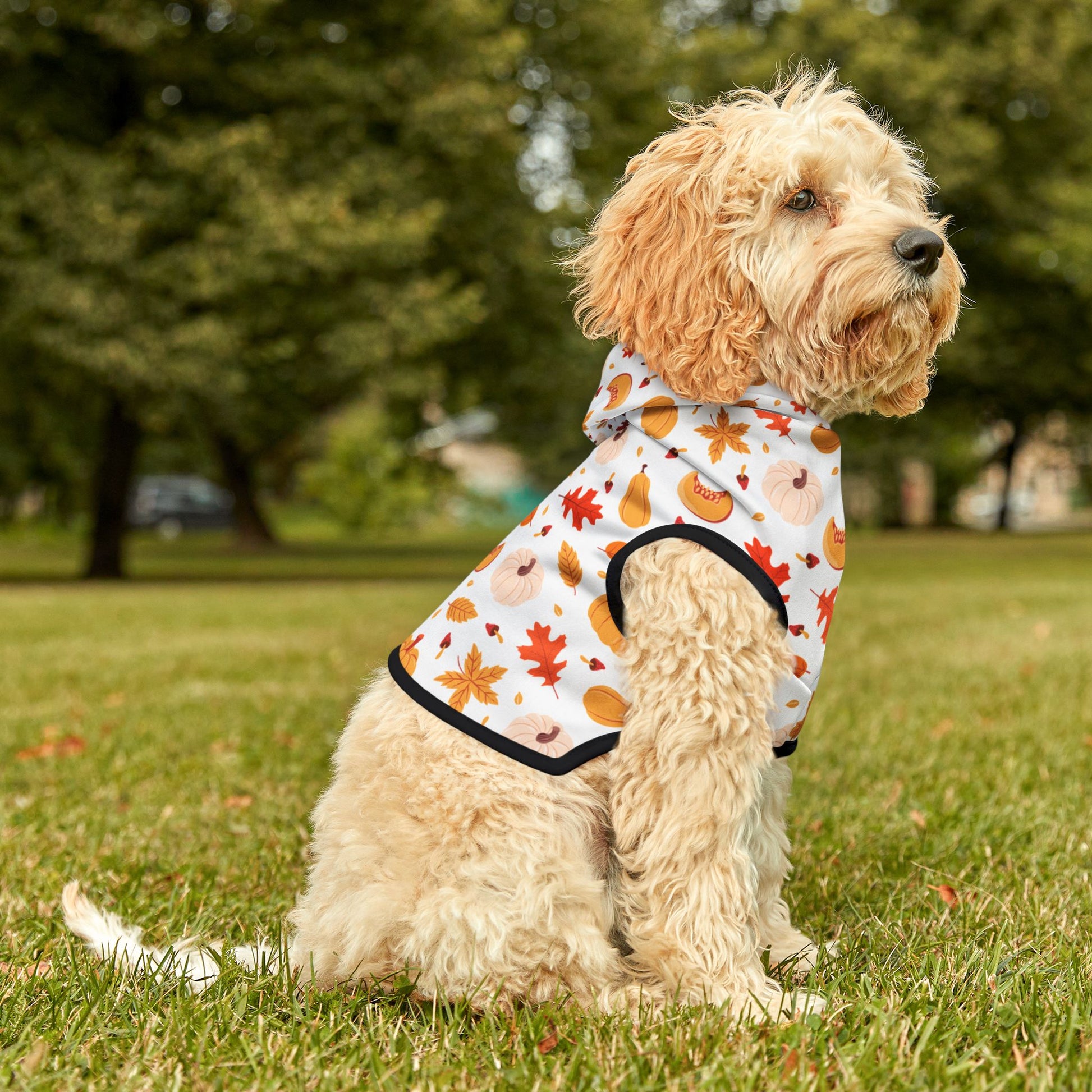 Get your pet ready for the cutest season of all with our Pumpkin Patch Pet Hoodie! Decorated with plump pumpkins and fluttering autumn leaves, this hoodie is a fall loverβs dream. Itβs cozy, festive, and perfect for every pumpkin-picking adventure or snuggle-by-the-fire kind of day. Your furry friend will be the star of every fall photo op!