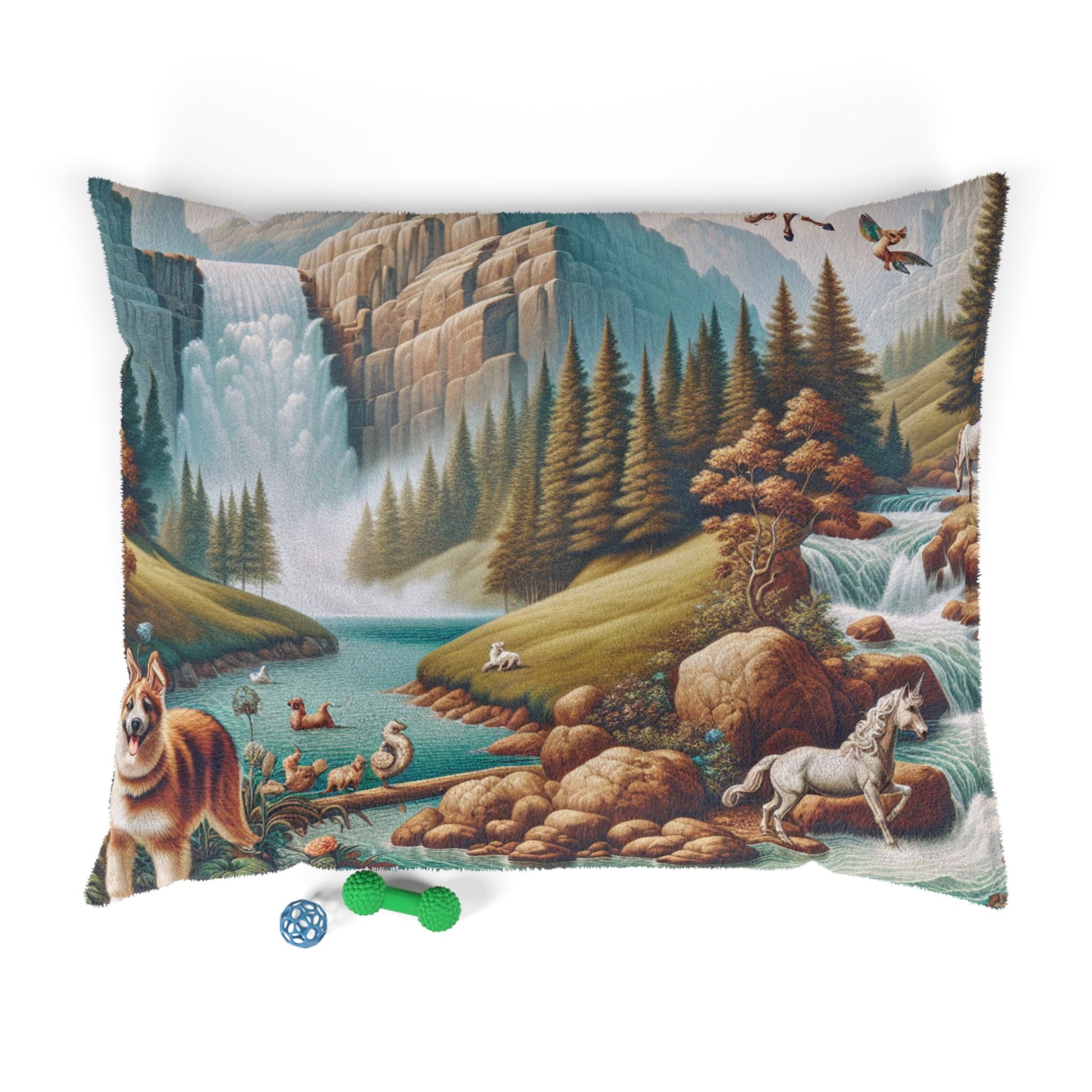 With its vibrant colors and magical design, this bed is ideal for creating a dreamy space for your pet to unwind. The removable, washable cover and shape-retaining insert make it a practical, yet enchanting choice for both you and your pet.