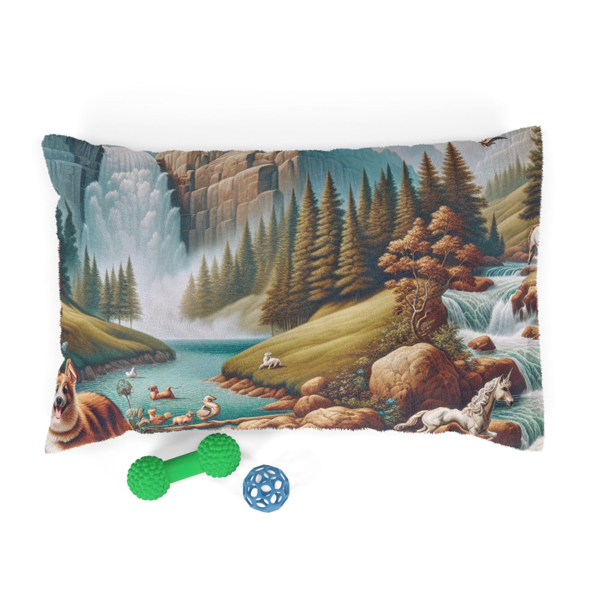 Bring a little magic to your pet's nap time with the Puppercorn Nostalgic Unicorn Pet Bed โ where dreams of rainbows and unicorns come true. Featuring a soft coral fleece top and a durable cotton duck underside, this bed is as cozy as it is whimsical. Itโs perfect for pet parents who want to add a pop of playful charm to their home while ensuring their furry friend lounges in comfort.