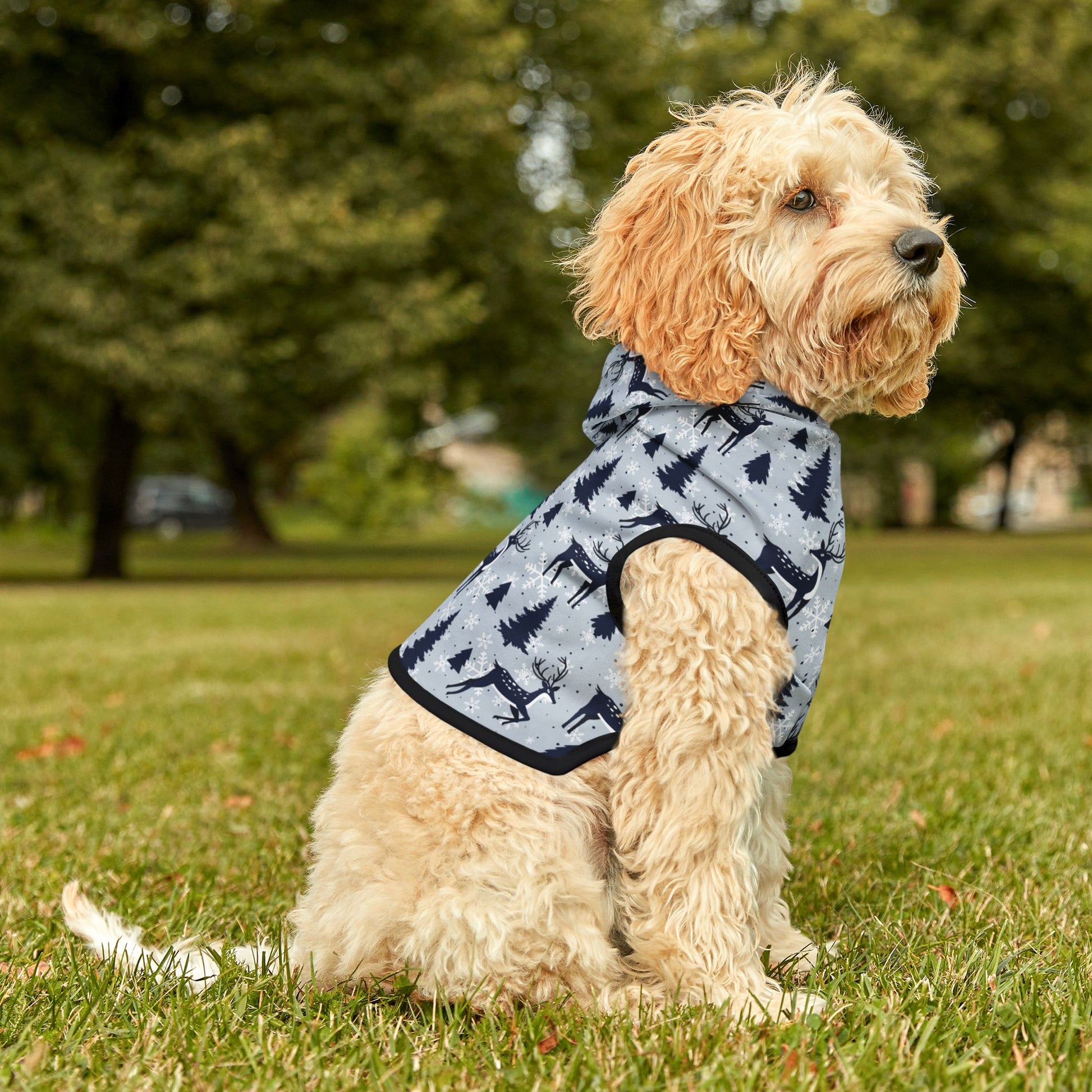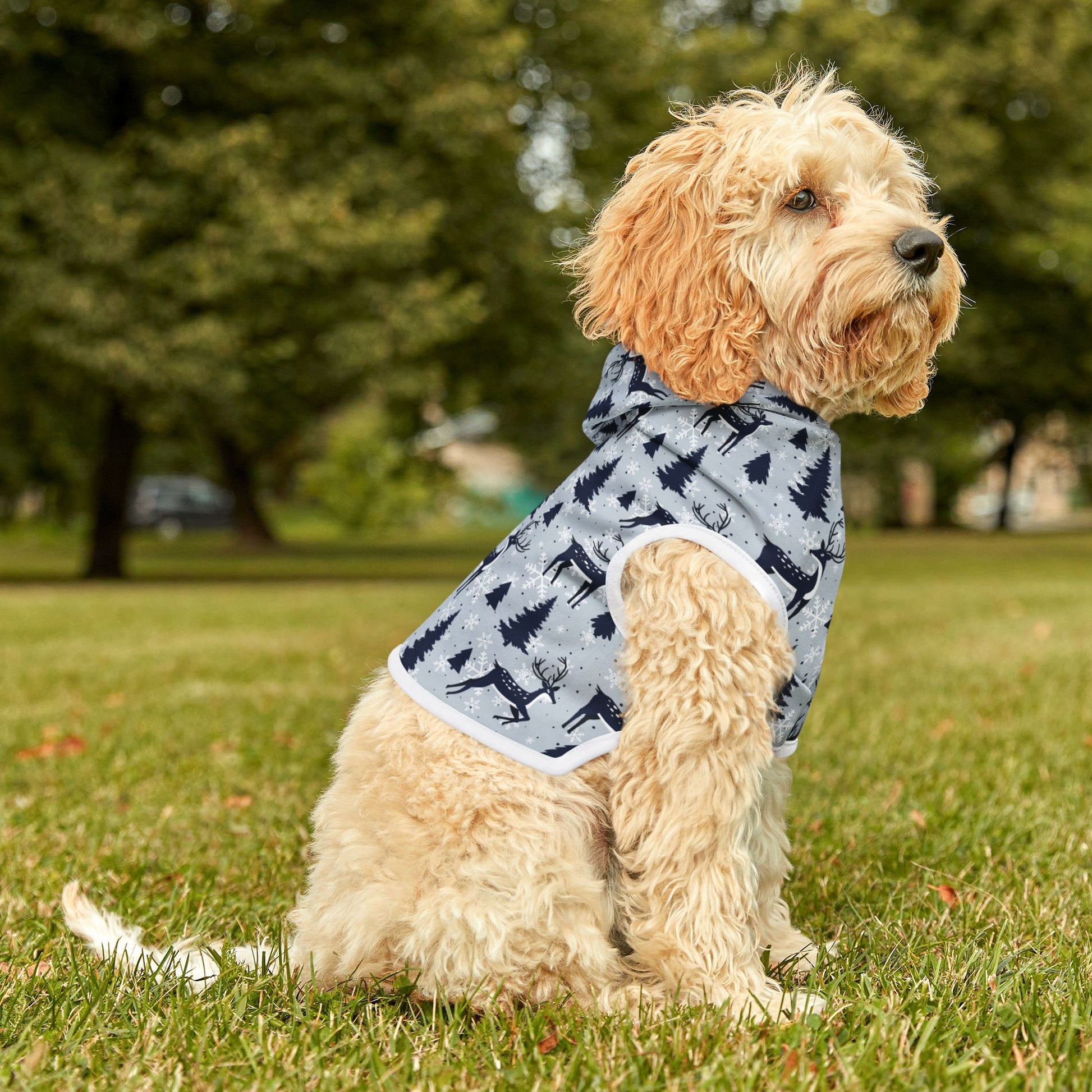 Dress your pet in cool winter charm with our Winter Blue Reindeer Pet Hoodie! Featuring an adorable pattern of playful deer and classic Christmas trees on a soft blue background, this hoodie captures that calm, snowy-season vibe while still feeling warm and festive. Perfect for winter walks, holiday photos, and cozy days indoors.